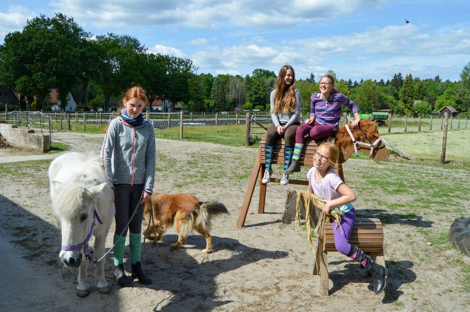 Uns ist sehr am Wohlergehen unserer Ponys und einem freundlichen, feinen Miteinander von Mensch und Tier gelegen. Für unsere Feriengäste bieten wir in kleinem Rahmen einfühlsamen, abwechslungsreichen Longen- und Bahnunterricht, Führausritte für Anfänger und Ausritte für Fortgeschrittene an.